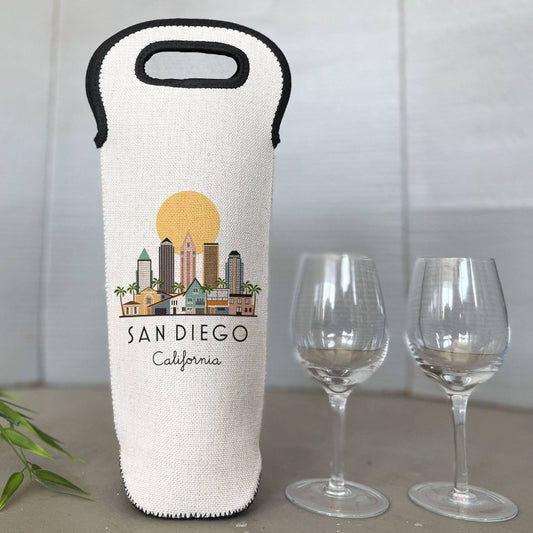 San Diego California Skyline Neoprene Wine Carrier Tote
