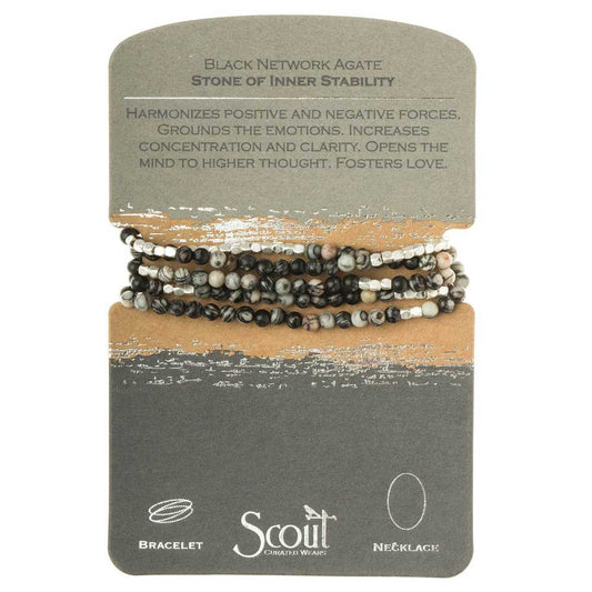 Scout Black Network Agate - Stone of Inner Stability Wrap Bracelet or Necklace