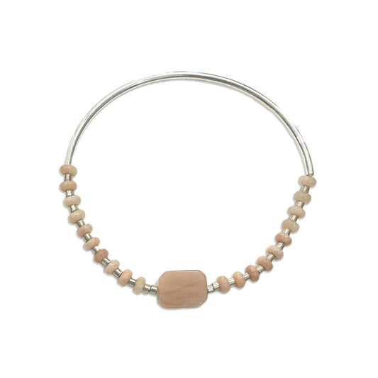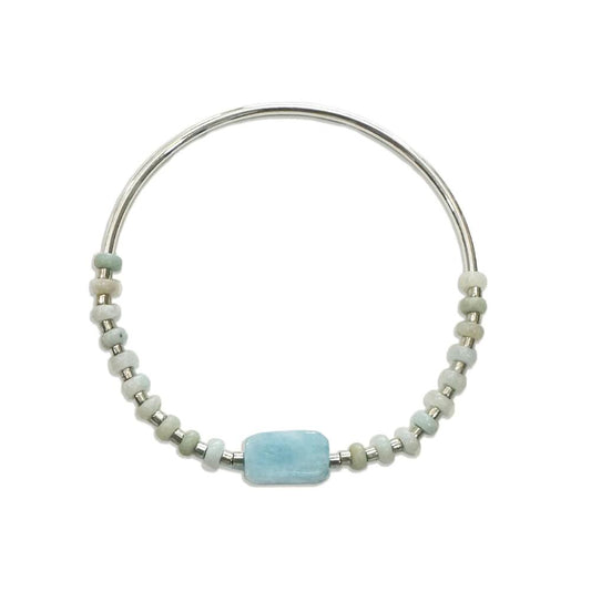 Cast of Stones Aquamarine Amazonite Stretch Silver Bangle