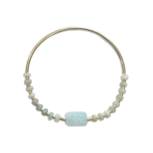 Cast of Stones Aquamarine Amazonite Stretch Gold Bangle