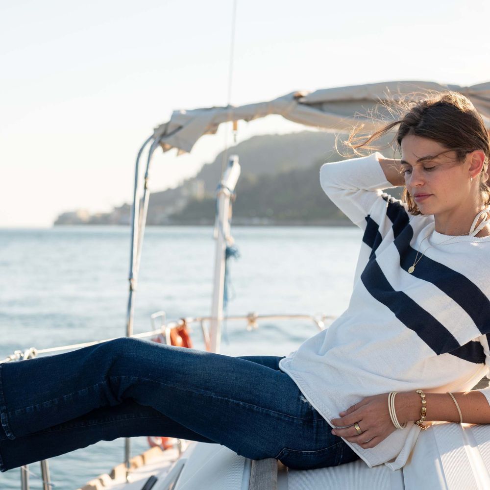 Catalina Sweater in Navy Cali Stripe by Mersea