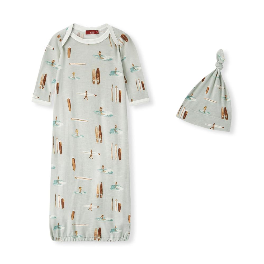 Vintage Surf Bamboo Newborn Gown and Hat Set by Milkbarn