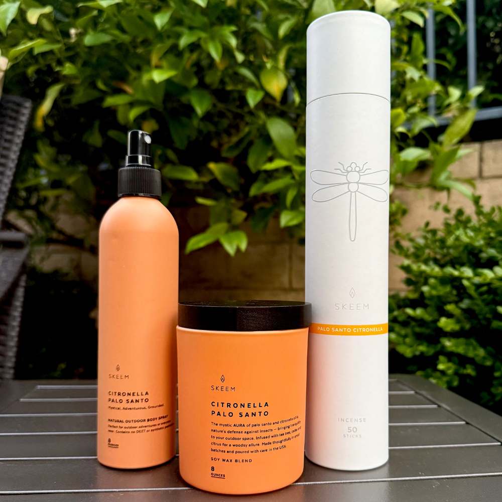 Our Modern Citronella incense feature packaging in a matching gray tone, with outdoor incense sticks that burn for up to one hour each. Incense holder sold separately.