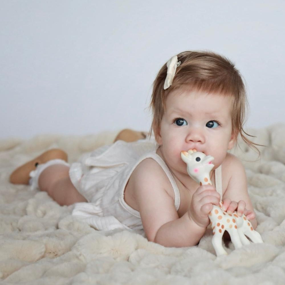 Sophie La Girafe is our favorite gift for baby! 100% natural rubber and food-grade dye. Light: dark & contrasting spots stimulate vision & make her recognizable to baby. Squeaker keeps baby amused & helps them understand cause & effect. Taste: Sophie's flexible, lots of parts to chew, soothing for teething. Touch: perfect for baby's hands, light & easy to grip, soft like mummy. Smell: natural rubber from hevea tree makes Sophie unique & easy to identify among toys.