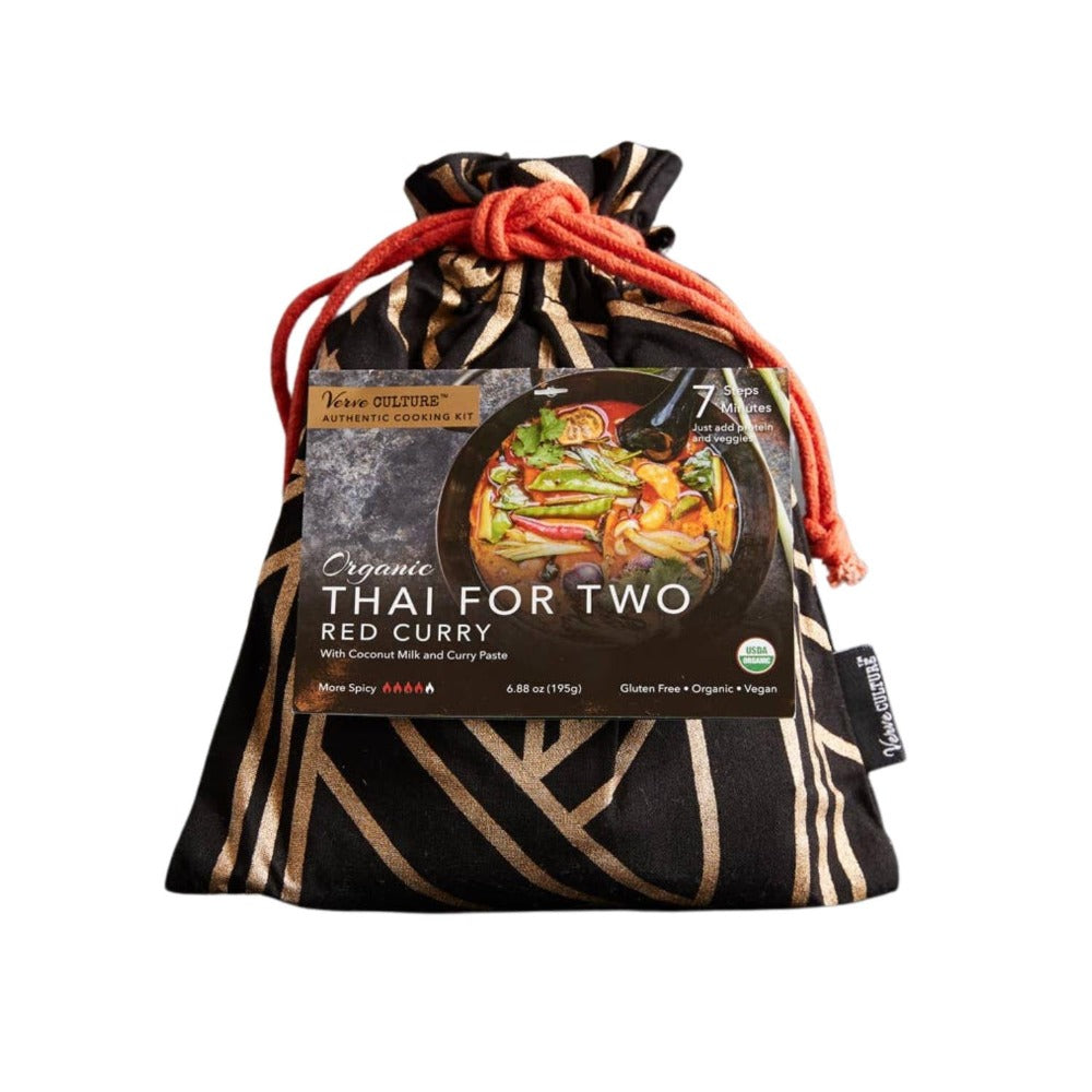 You can cook authentic Thai curry at home with our Thai for Two cooking kits. Chili peppers are Red Curry's main ingredient, making this spicy and aromatic. Authentic ingredients are from an organic farm in Thailand.