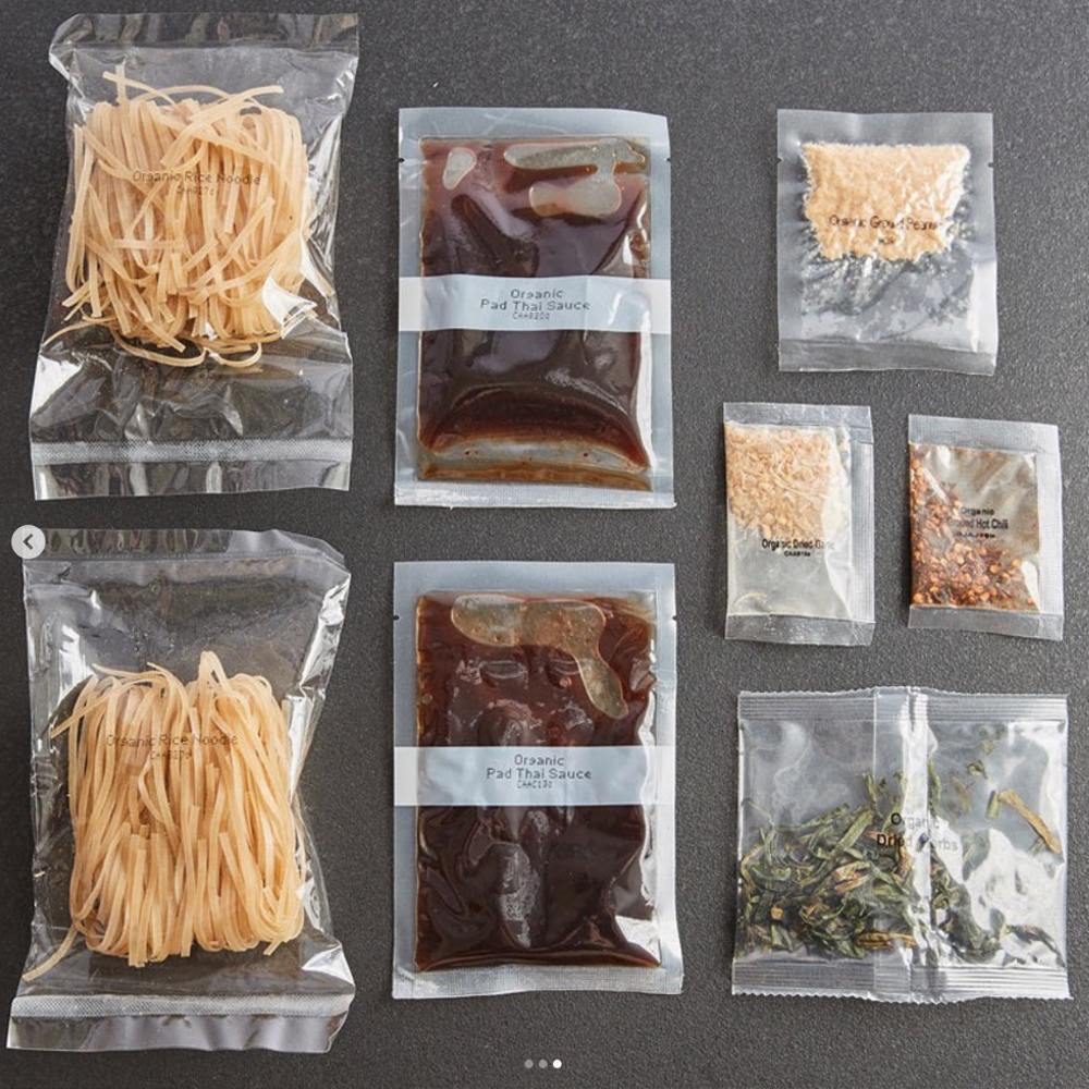 This kit includes 9 sachets: Organic Rice Noodles. Organic Dried Garlic. Organic Dried Herbs. Organic Pad Thai Sauce. Organic Ground Peanuts. Organic Ground Hot Chili (for extra Spice).