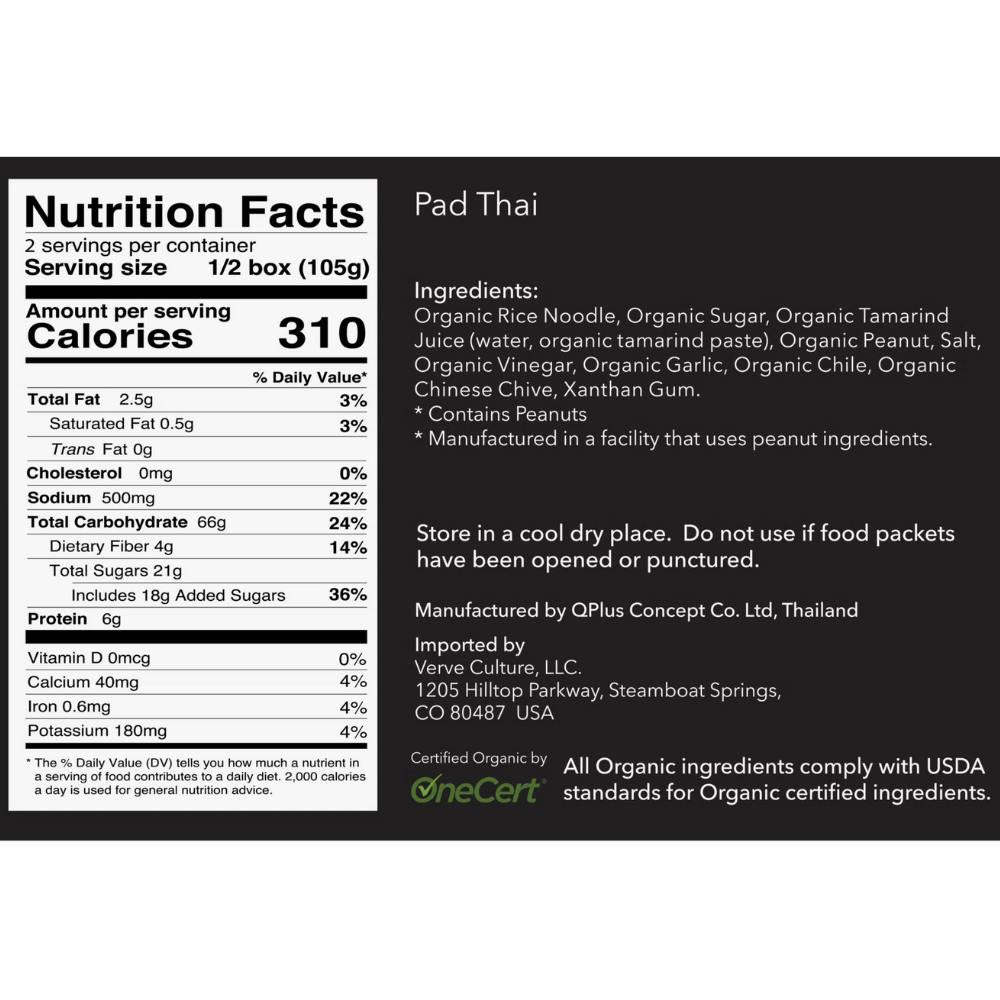 Organic Pad Thai ingredients comply with global standards for organic certified ingredients.